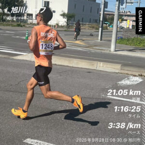 旭川ハーフは非公認レース(ガーミン的にも少し距離が短い^^;)ので公式には丸亀の記録がPBのままですが、まだ少し暑くて仕上がってもいない9月末の時期に(ガーミンの距離で21.1km走ったとしても)1時間16分台で走れたのは、とても自信になりました(*^^*)