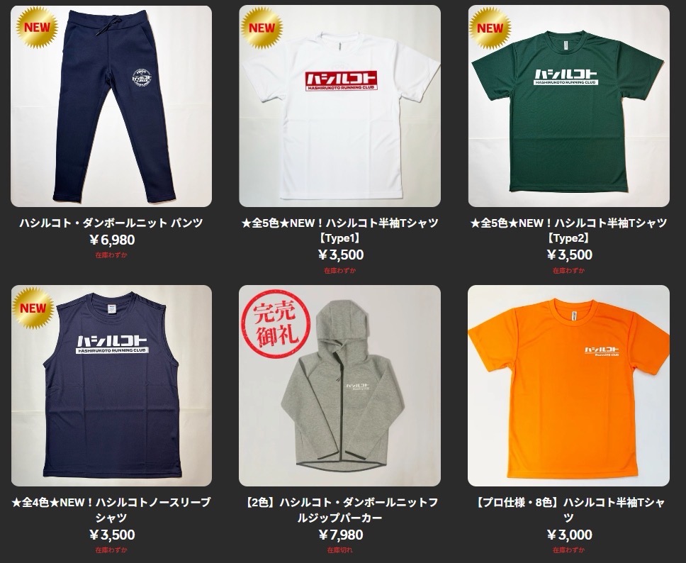 新しくダンボールニットのズボンや、NEWデザインのハシルコトTシャツなどを新規登録、従来デザインのハシルコトTシャツも在庫補充しましたので、気になる方は是非どうぞ!