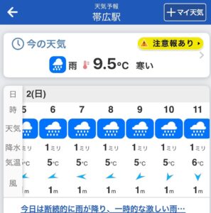 当日の天気予報は、残念ながら雨で低温。