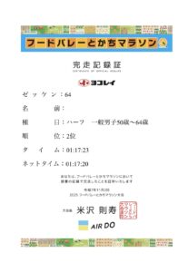 2025年フードバレーとかちマラソン 1時間17分23秒(グロス)