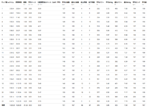 (えー。温存してきたつもりなのに、去年と同じようなラップしか出ない…ワンチャン3分20秒台/kmとか出ると思ってたのに!)