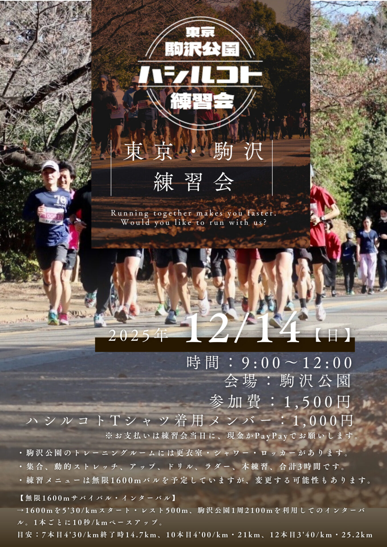 あと12月14日に東京・駒沢公園で、ハシルコト練習会を予定しています!