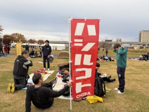 ハシルコト千葉のメンバーに、のぼりを持ってきてもらいました