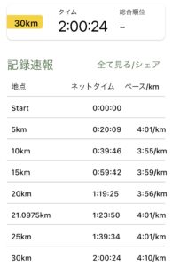30km地点 DNF 2時間00分24秒(4’01/km)
