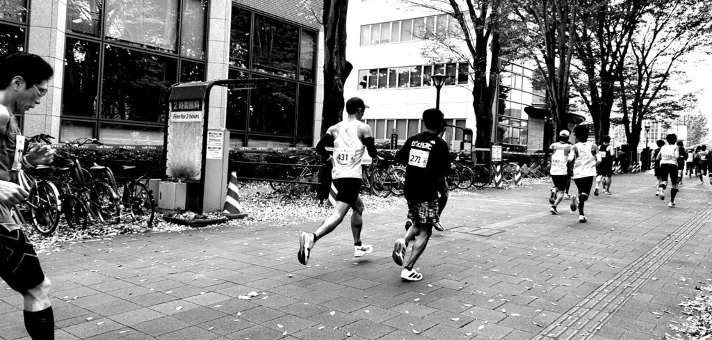 そんなことを思いながら、ペースダウンが始まったので徐々に後ろのランナーに1人・また1人と抜かれていくようになっていました。