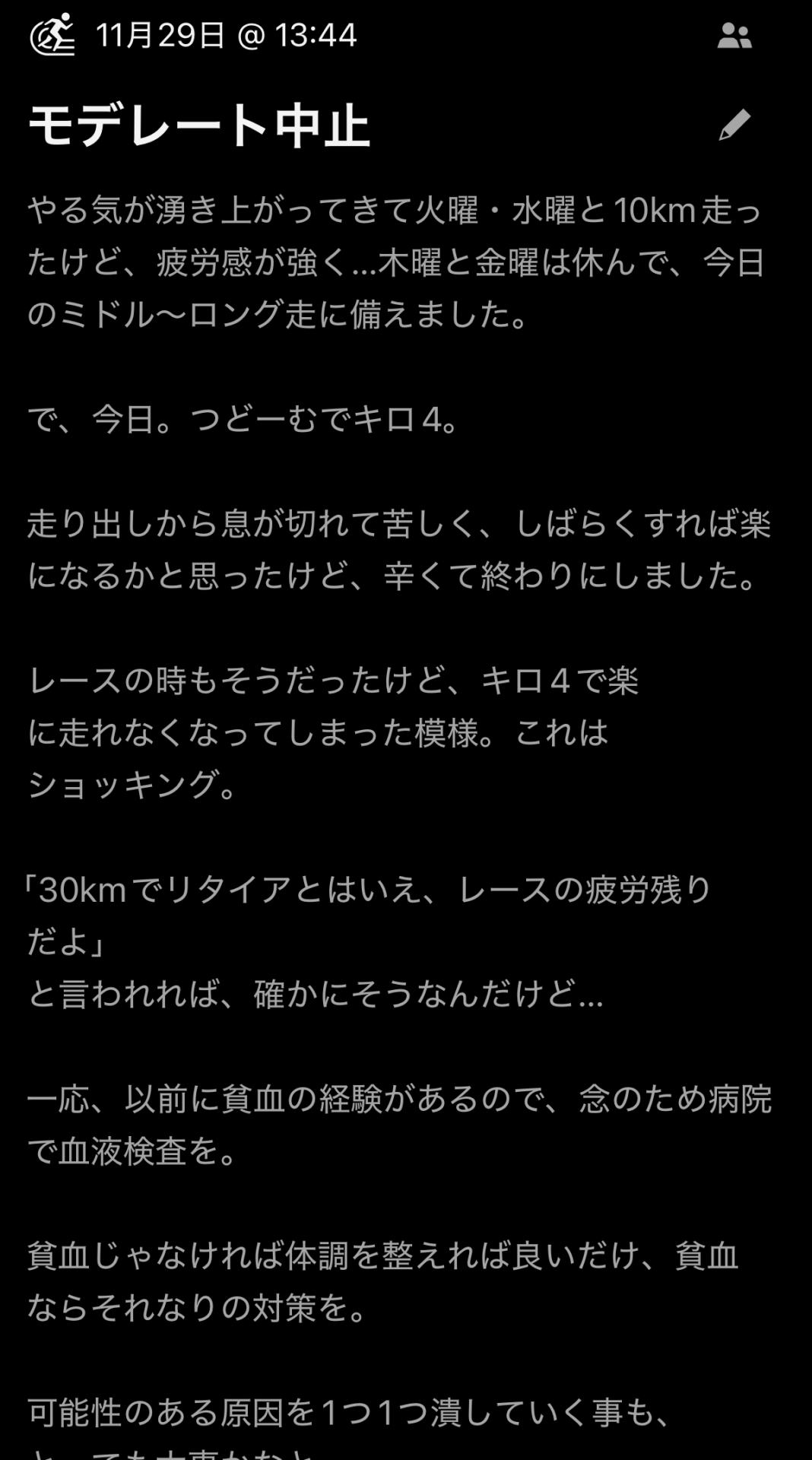 それはレース直後に書いた、ガーミンコネクトの日記にも現れています。